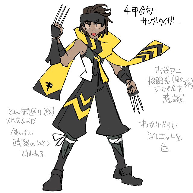 男っぽい装備案も。コンセプト通りではあるけど、フェチ力が足りなくて納得いってないからどうせ変わるしいいでしょ。ポケットナイフ