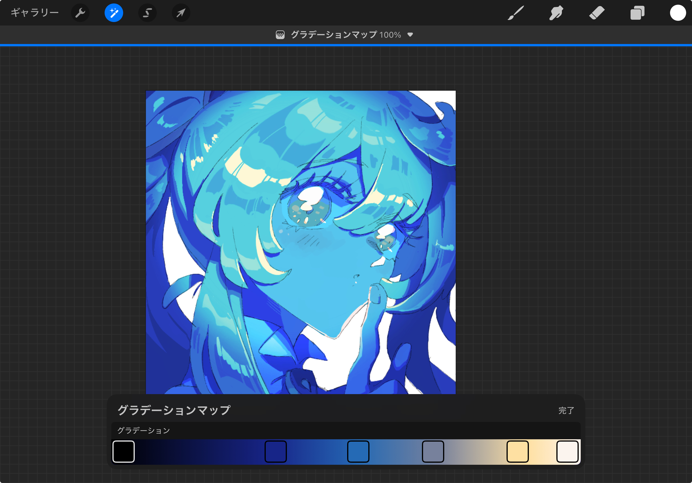 むらさきもいい。陰影に集中できるのでどんな色でもなんかいいかんじになる。グリザイユ画法のことよくわからないマンにとってこの描き方は救いとなりそうです。配色が強すぎると感じたらグラデーションマップの強さを調整すればいいのだ。