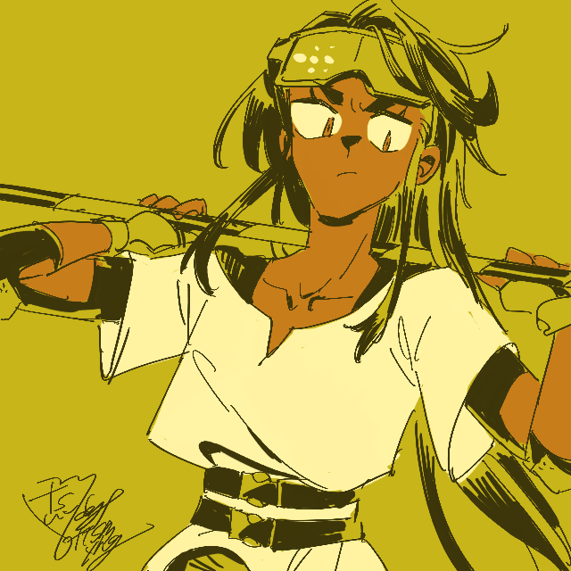 日々の中でデザイン考えていかないと絶対間に合わない。というわけで、変わると思うからネタバレではないという理論で色々やります。これはSF装備も着るようになったリベレ。身体の線が出まくっていますが、無性別ボディのおかげで全くエロくないね。