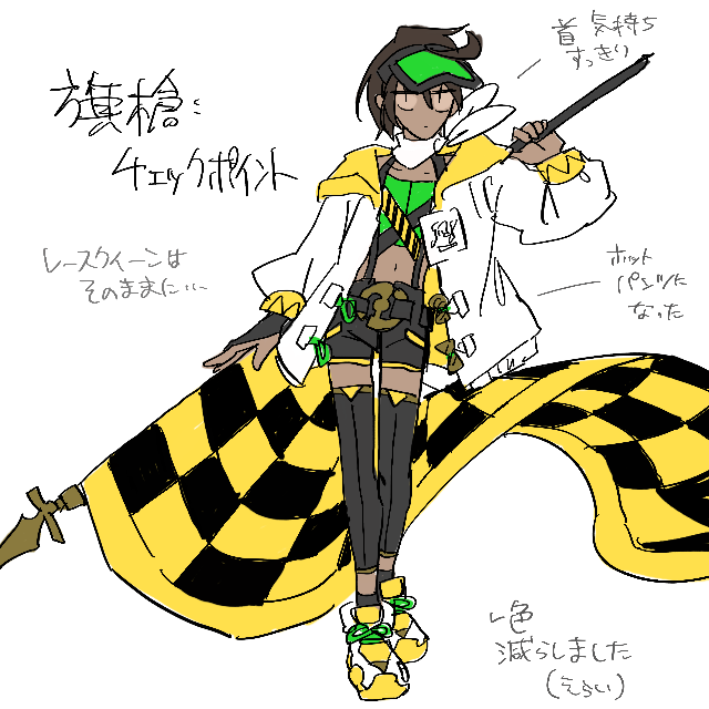 日々の中でデザイン考えていかないと絶対間に合わない。というわけで、変わると思うからネタバレではないという理論で色々やります。これはSF装備も着るようになったリベレ。身体の線が出まくっていますが、無性別ボディのおかげで全くエロくないね。